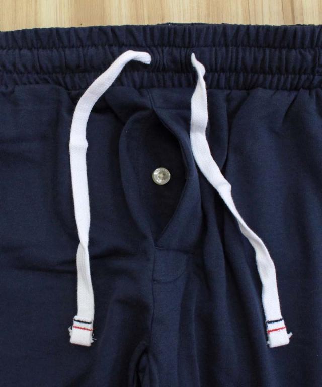 ミディアムウエイト生地にウエストはシャーリング、裾はしっかりとしたリブ仕立て。