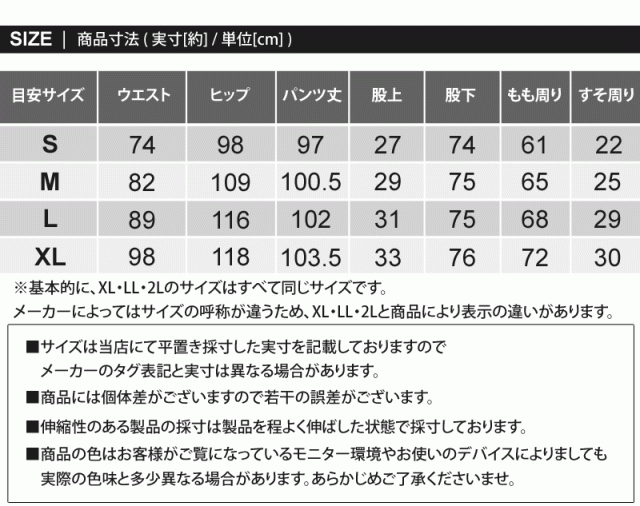 メーカーによってはサイズの呼称が違うため、XL・LL・2Lと商品により表示の違いがあります。