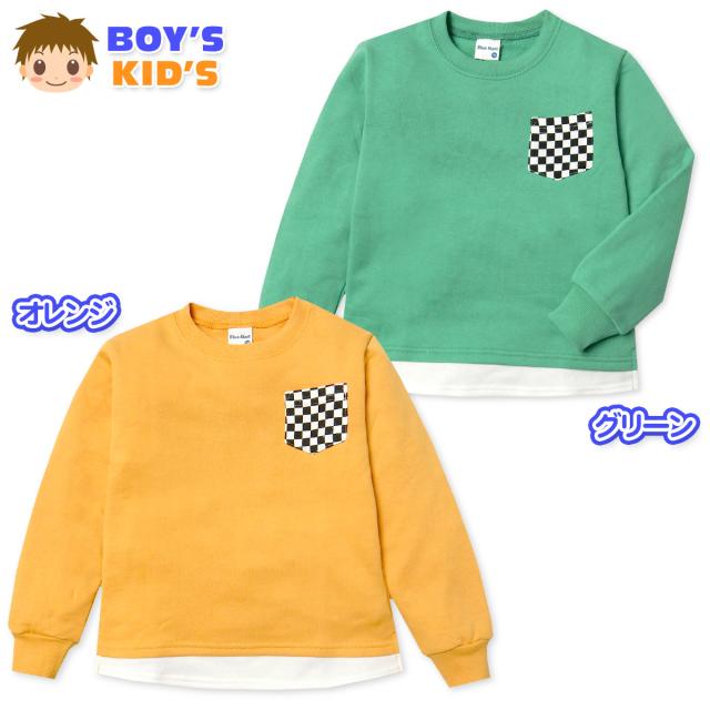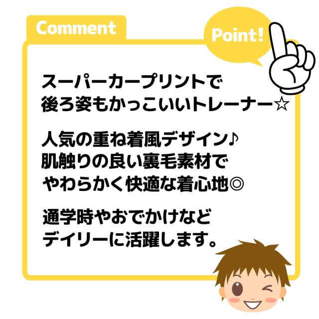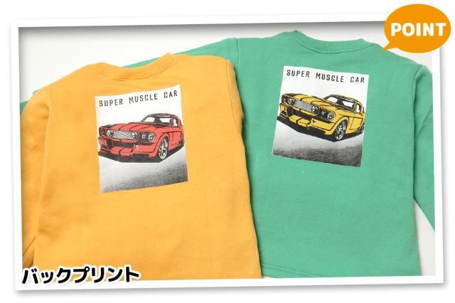【送料無料】男児 キッズ 裏毛 長袖 トレーナー スーパーカー 裾重ね着風 胸ポケット ラウンド裾 子供服 男の子 nw-0991【メール便対応】