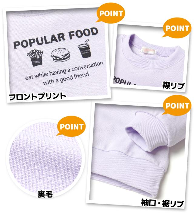 【送料無料】女児 キッズ 裏毛 長袖 トレーナー ハンバーガー バックプリント 子供服 女の子 110cm 120cm 130cm nw-0983【メール便対応】