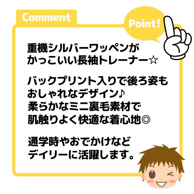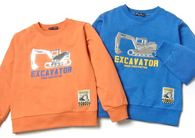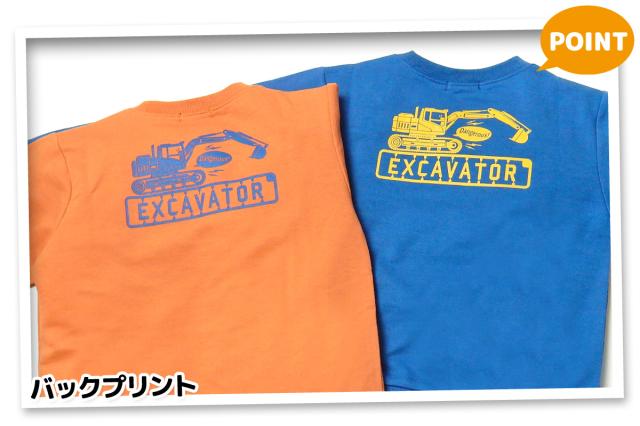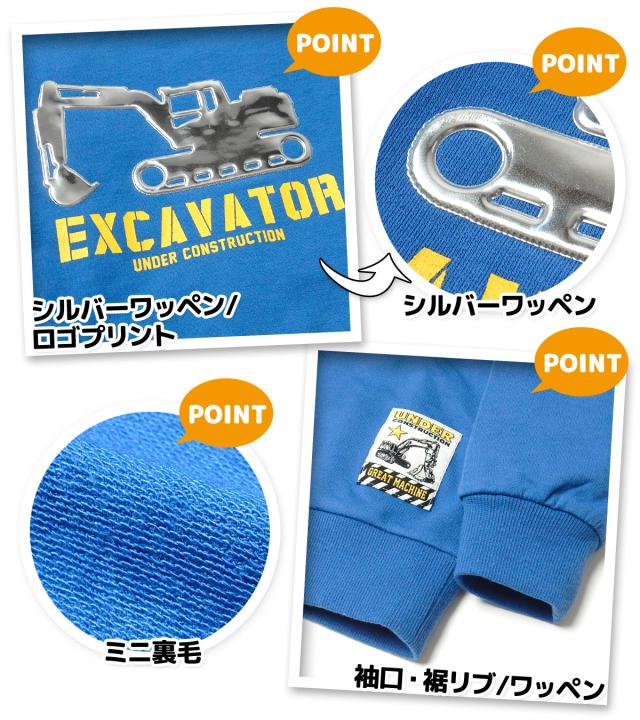 【送料無料】男児 キッズ ミニ裏毛 長袖 トレーナー 重機 シルバーワッペン バックプリント 子供服 男の子 nw-0969【メール便対応】
