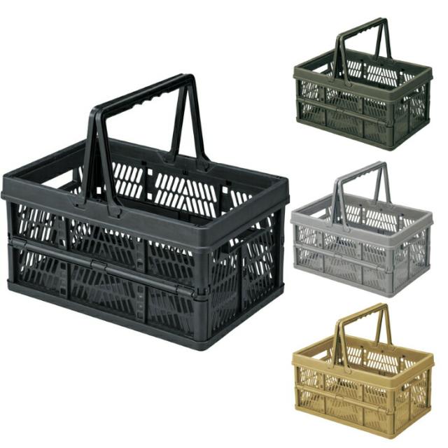 スタッチボックス 収納ボックス 買い物カゴ コンパクト 折りたたみ コンテナBOX アウトドア おもちゃ箱 取っ手付 ブラック グリーン グレー サンドベージュ 東谷 LFS-31