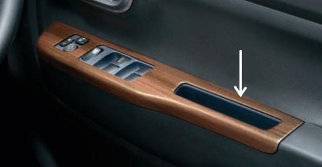 アルト、HA37S/HA97Sのドアアームレストに装着するウッド調ガーニッシュ。