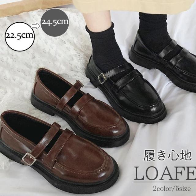 ローファー レディース ローヒール ぺたんこ ストラップ レトロ 厚底 パンプス ローヒール 歩きやすい 走れる 通学 靴 可愛い