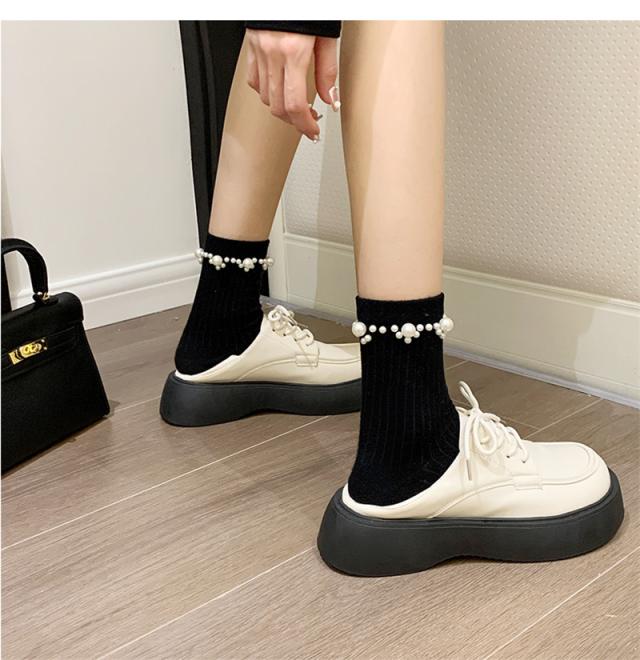 新作 ローファー レディース ミドルヒール レトロ 太ヒール 履きやすい ぺたんこ 厚底 コンフォート カジュアル 滑り止め 通学