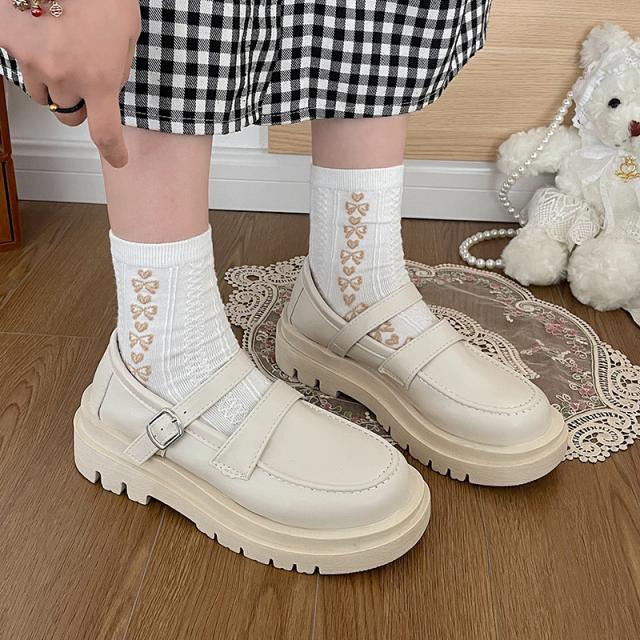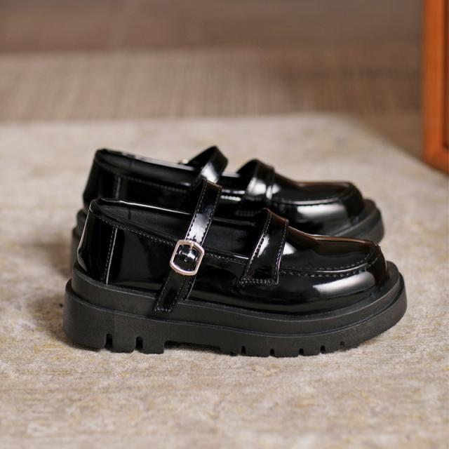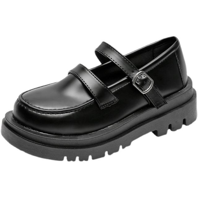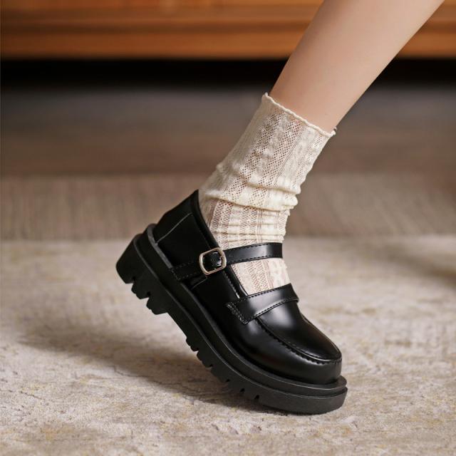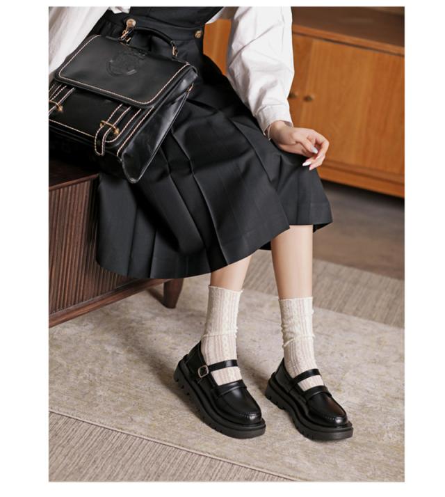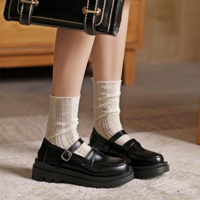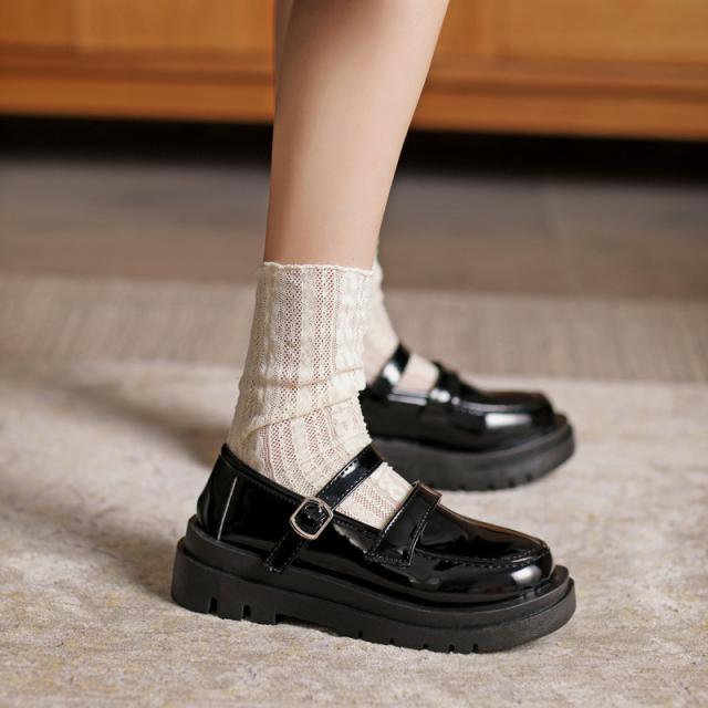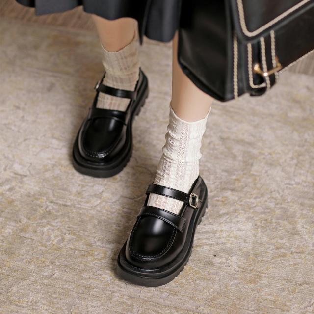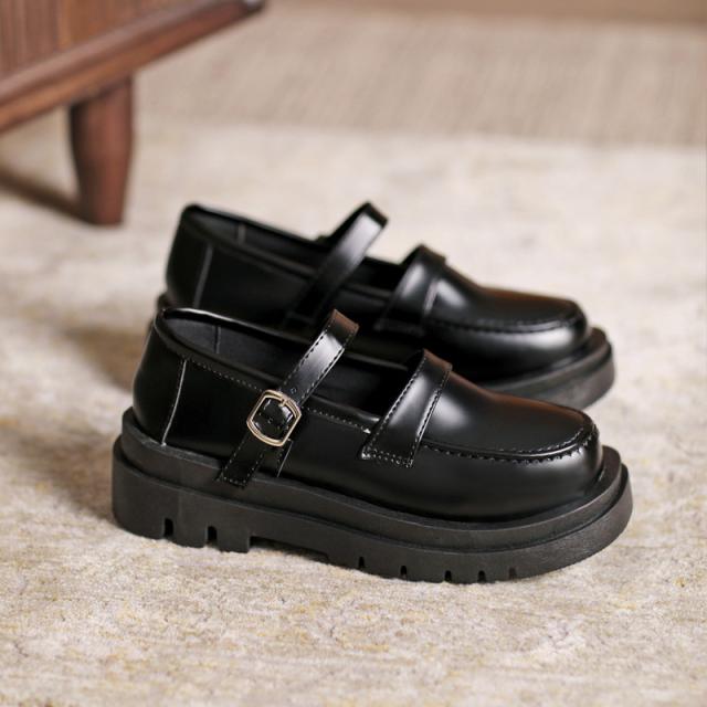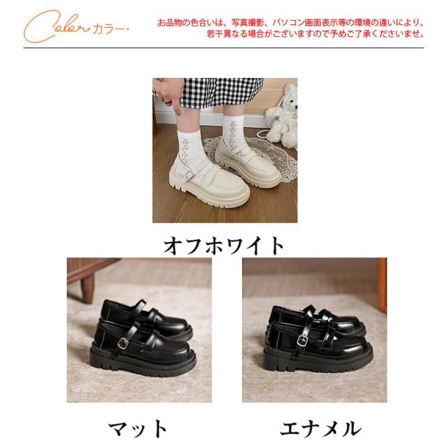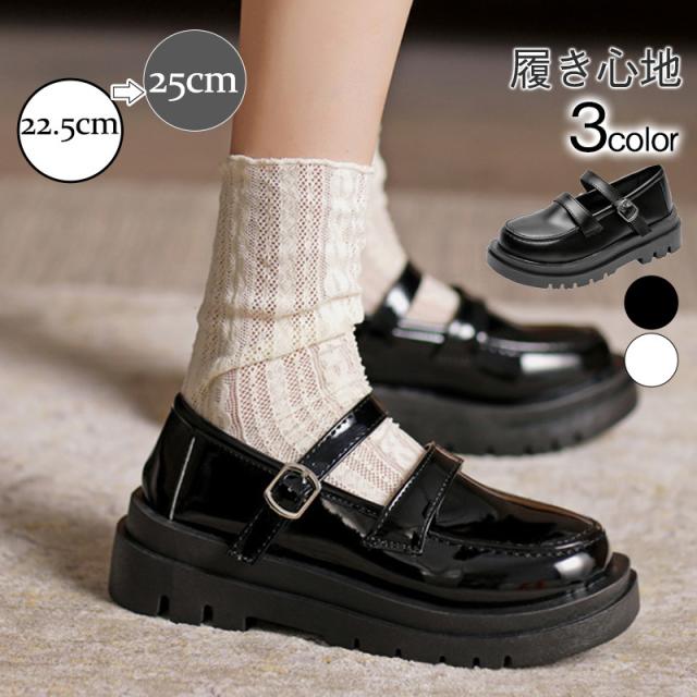 ローファー レディース ミドルヒール ストラップ 厚底 カジュアル 滑り止め 光沢感 コンフォート スクールシューズ 通学 美脚