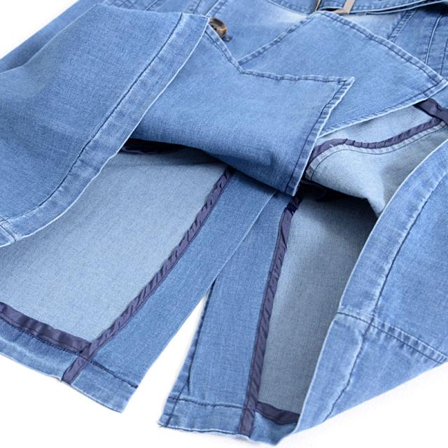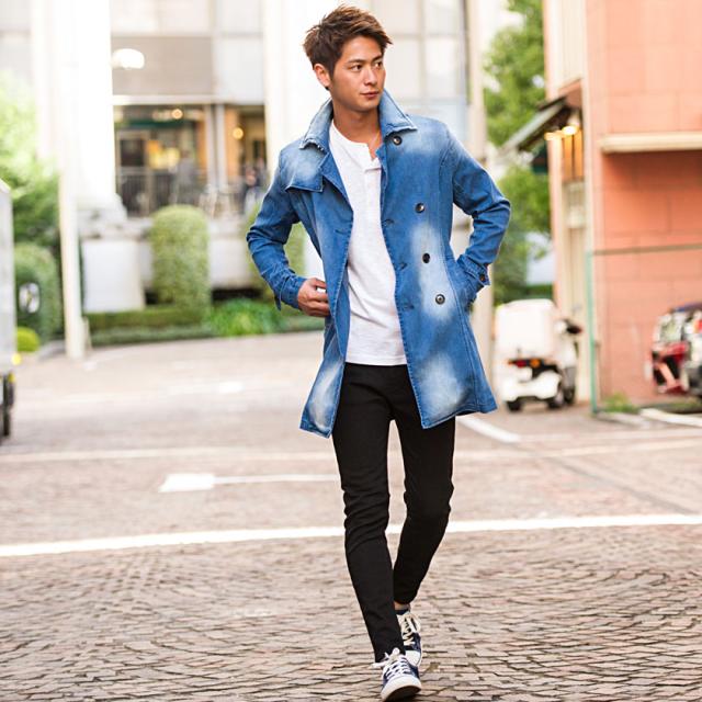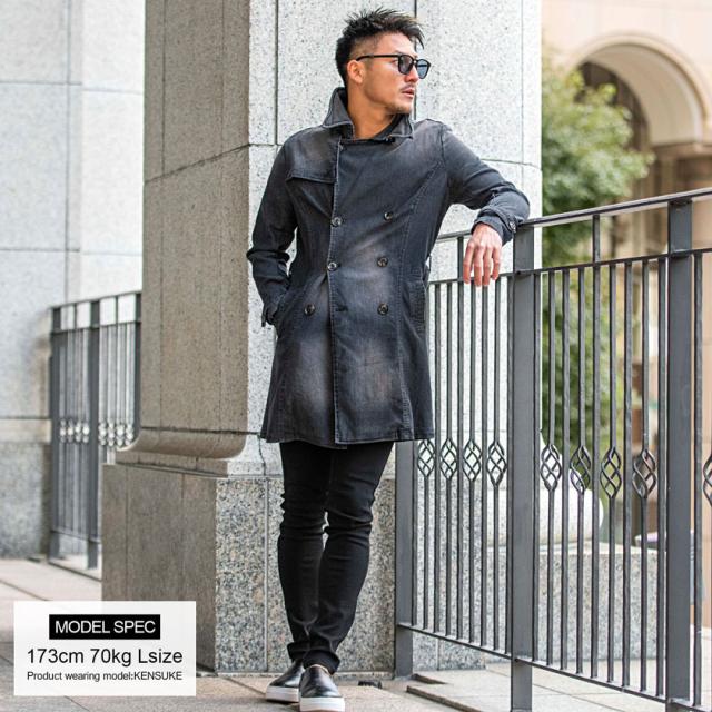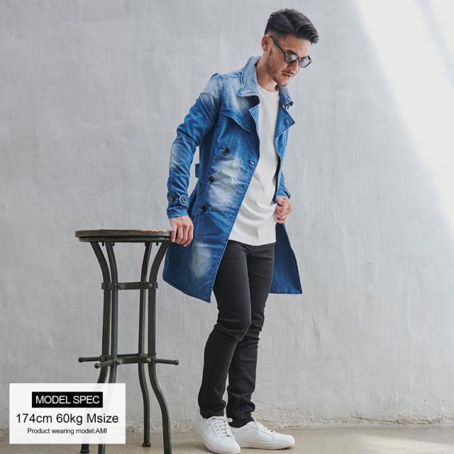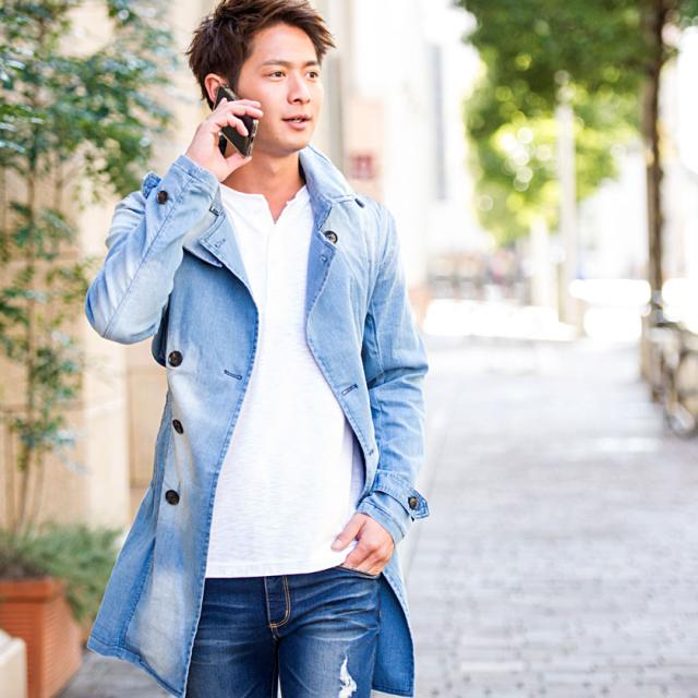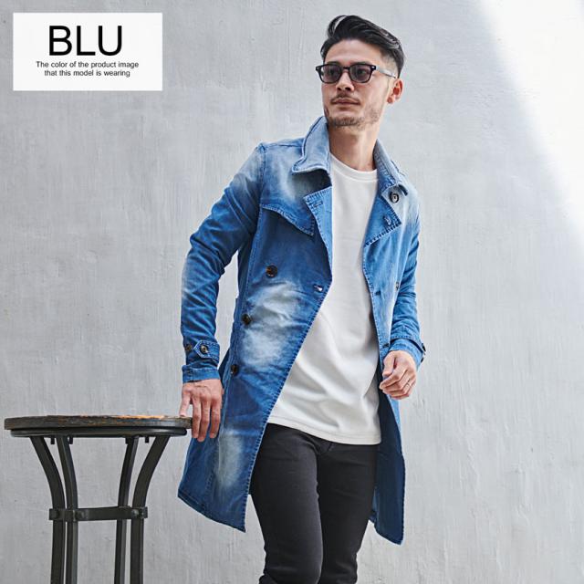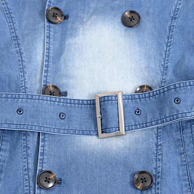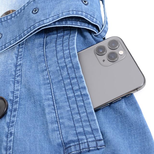 伸縮性のある素材を使用し着心地の良さが魅力のデニムトレンチコート。