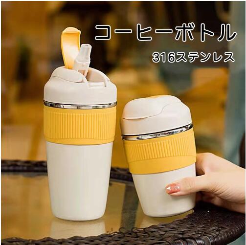 コーヒーボトル 保温 タンブラー 持ち運び 直飲み コーヒータンブラー アイスコーヒー 水筒 保冷 蓋付き 水筒 漏れない マグカップ 2way