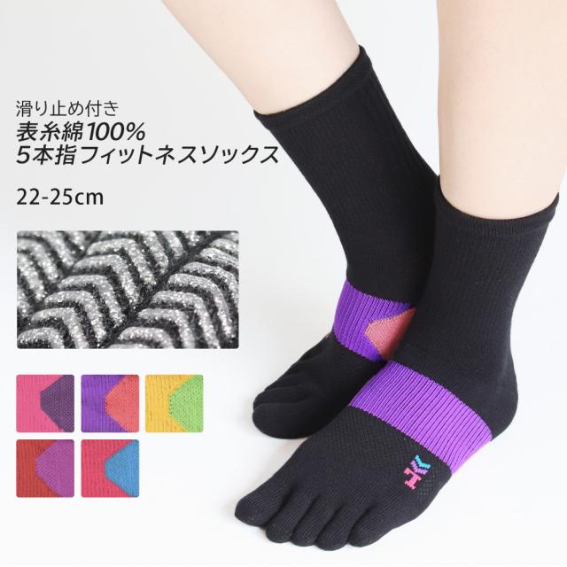 フィットネス 5本指ソックス 滑り止め付き 表糸綿100% ロークルー 土踏まずサポート ソックス メッシュ 靴下 綿 *2-4t *y3-8t
