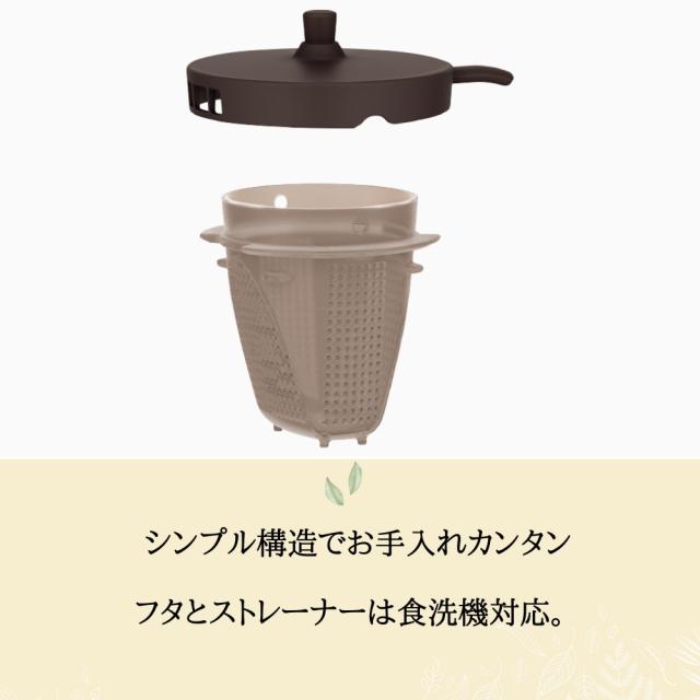 茶葉を直接入れられるストレーナー食洗機対応なのでお手入れがしやすい。