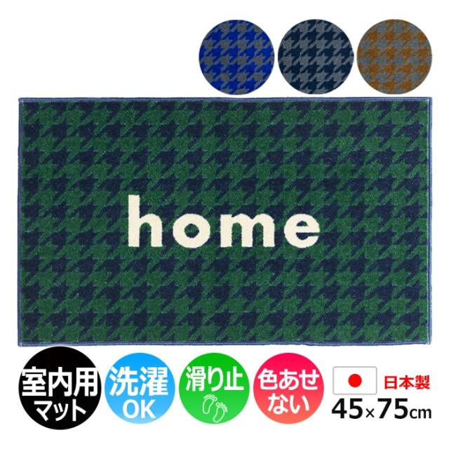玄関マット 室内 おしゃれ 北欧 洗える マット キッチン 室内 屋内用 約 45×75cm 北欧 かわいい 英語 ふくろう 幸運 シンボル 風水 福を呼ぶ kahou Moi! (R) 新生活 滑り止め付き フロアマット 日本製 裏面不織布 洗面所 脱衣所 グリーン グレー ドット