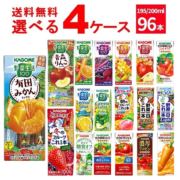 カゴメ 野菜ジュース 選べる よりどり セット 200ml・195ml×96本(4ケース) [送料無料※一部地域は除く]