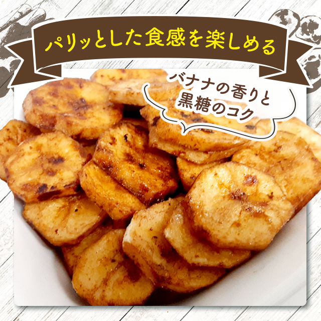 ・バナナチップをまろやかな甘味を感じる黒糖で仕上げました。