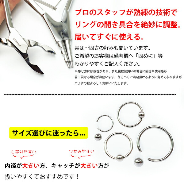 こちらのピアスはリングの開き具合を当店で調節済みです