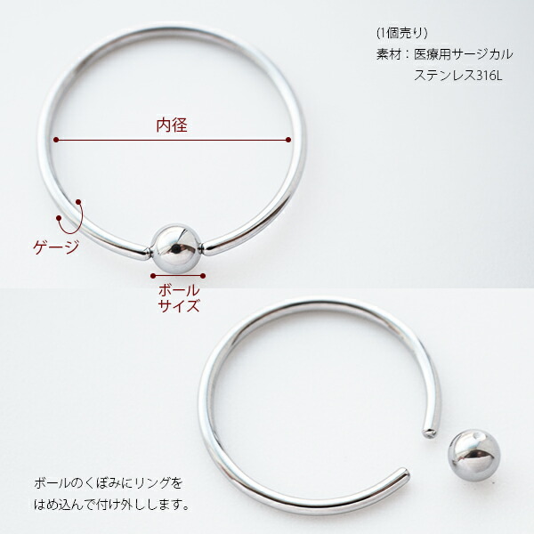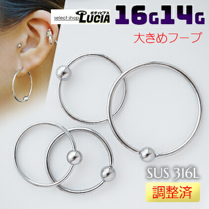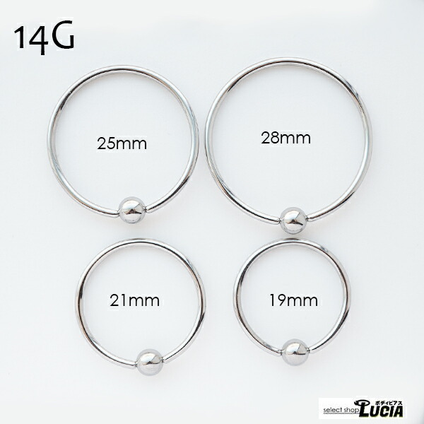 本日P2倍 調整済 14G 16G ボディピアス 大きい リング ピアス 14G 16G シンプル 大きめ キャプティブビーズリング 金属アレルギー対応 フープ CBR