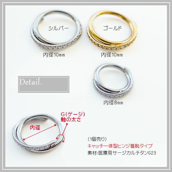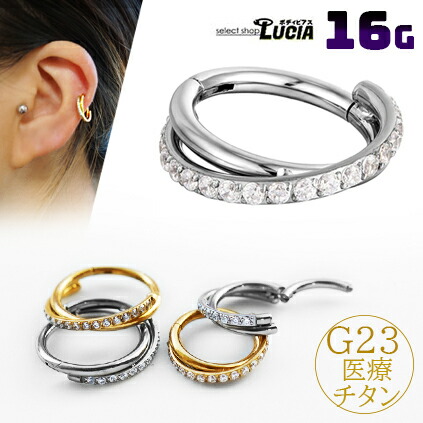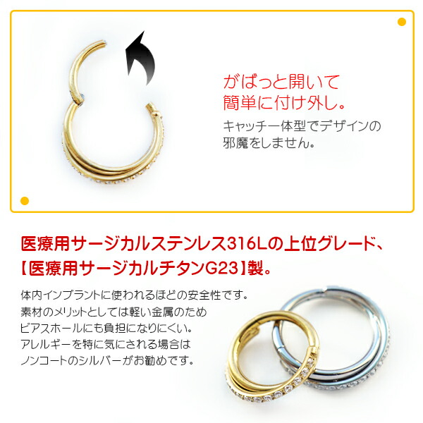 本日P2倍 チタン 16G ピアス ボディピアス リングピアス キラキラ ワンタッチピアス カラー クリッカーセグメントリング 軟骨ピアス フープ