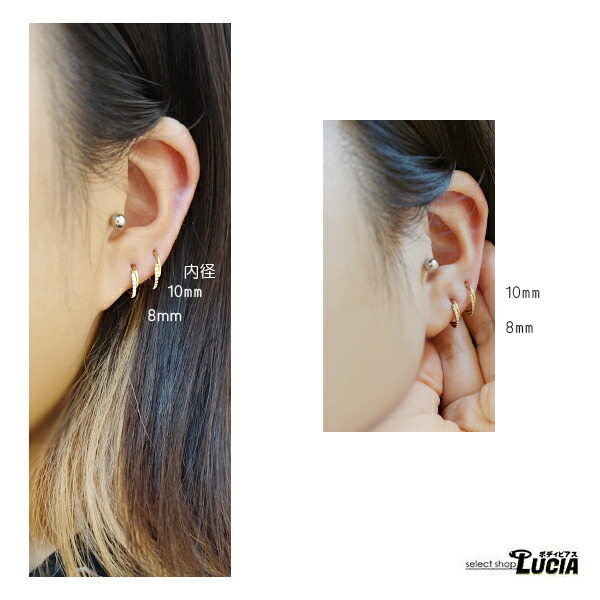内径10mmはゆとりがありフープピアスのような印象に。