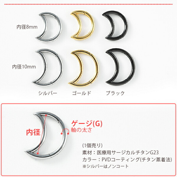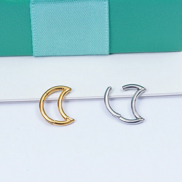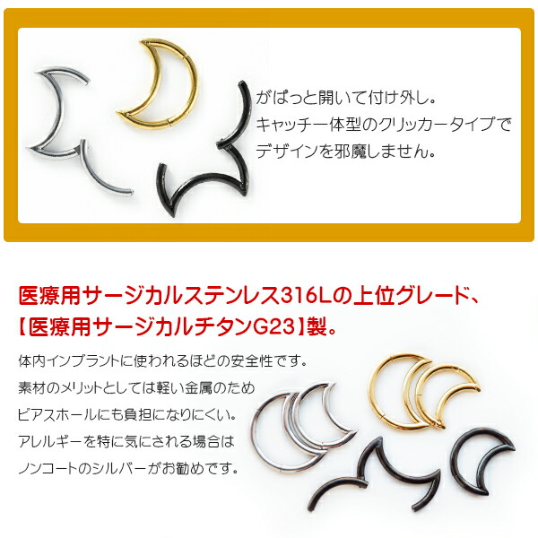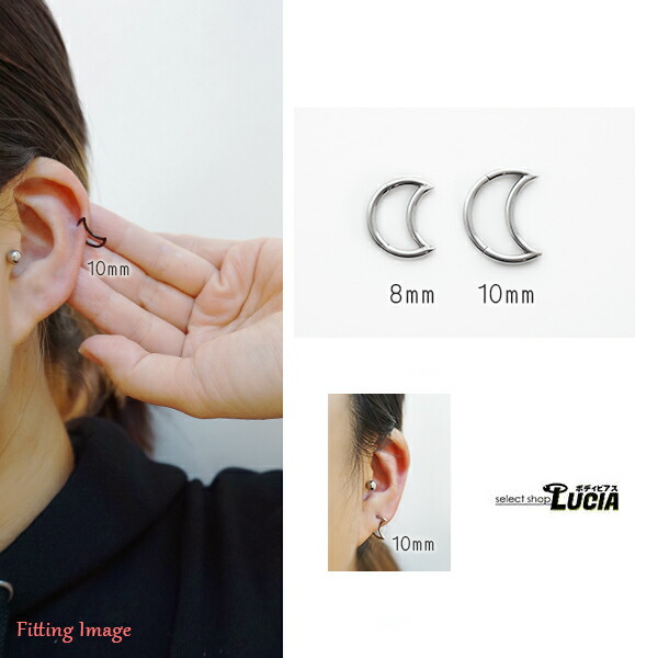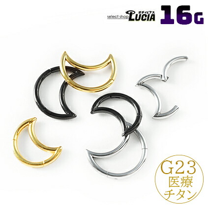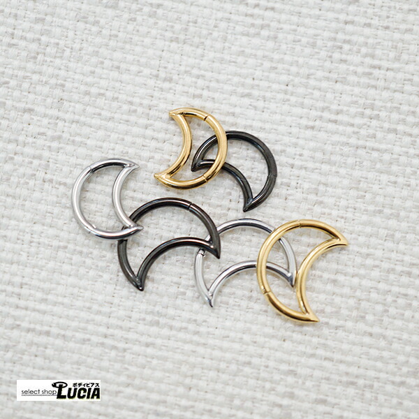 本日P2倍 チタン 16G ピアス ボディピアス リングピアス 三日月 月 ワンタッチピアス 可愛い クリッカーセグメントリング 軟骨ピアス ダイス