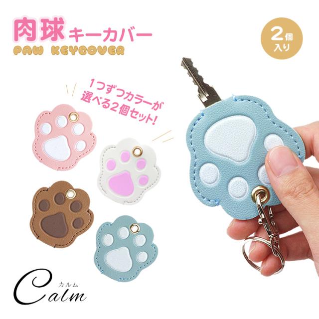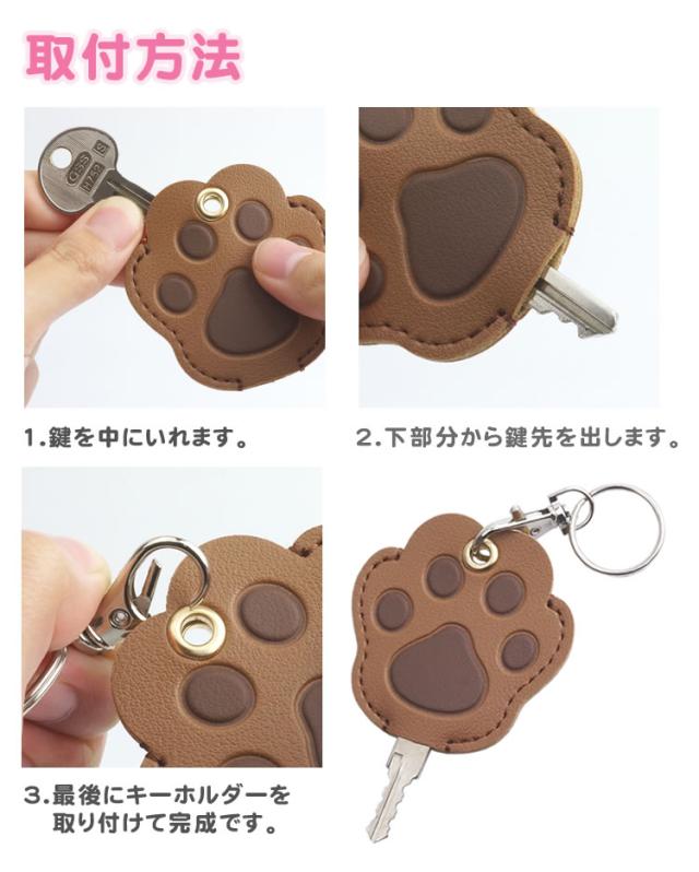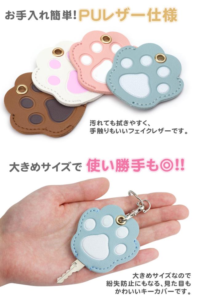 キーカバー 選べる 2個セット 鍵カバー 肉球 犬 猫 PUレザー 鍵 ケース かわいい キーホルダー付き 防犯 ナンバー隠し リング プレゼント お揃い