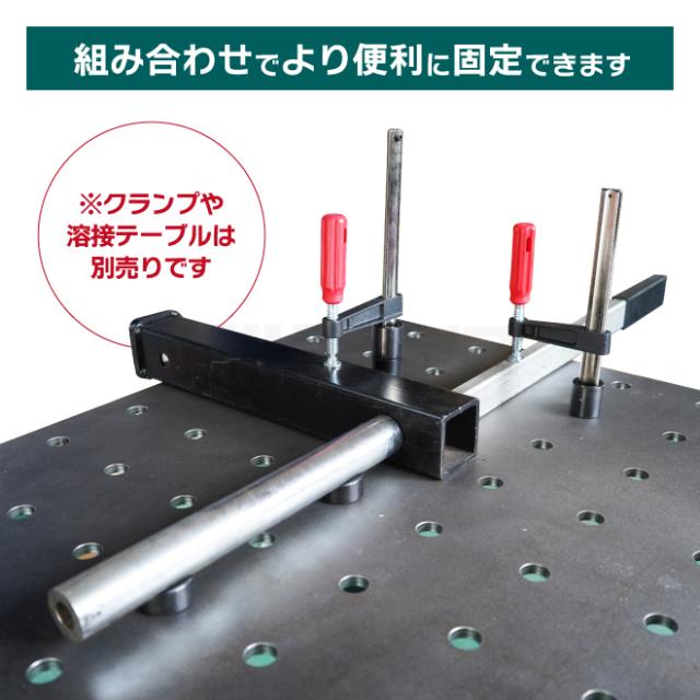 パイプ等の溶接時に!ラウンド型の溶接テーブル用ホルダー ●パイプなどの溶接時に ●16mmの穴に差し込んで使用できる溶接テーブル用ホルダーです ●ラウンド型なので、パイプなど筒状物の配置に適しています ●穴に差し込み、パイプを置くだけで仮固定できます ●配置を変えることで様々な使い方ができます ●便利な2個セット 【関連商品はこちら】 ●溶接テーブル キャスター付 ●溶接テーブル用クランプ 2個セット |