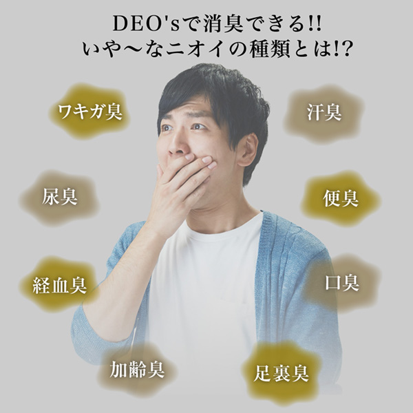 今まで消臭できなかったワキガの匂い成分など、人が発生する体臭をしっかり消臭してくれます。