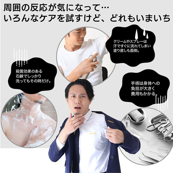 また、ワキガだけでなく身体から発せられる全ての臭いをインナーウエアが取り込み消します。