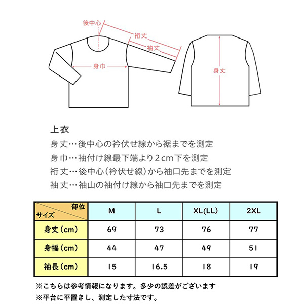 XL:着丈76cm、身幅49cm、袖丈18cm
