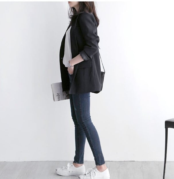 レディース スーツ ジャケット 上着 羽織り テーラード ブレザー 韓国 体型カバー トレンド 高見え 美スタイル 可愛い かわいい かっこいい カジュアル 高品質 大人 上品 きれいめ シンプル