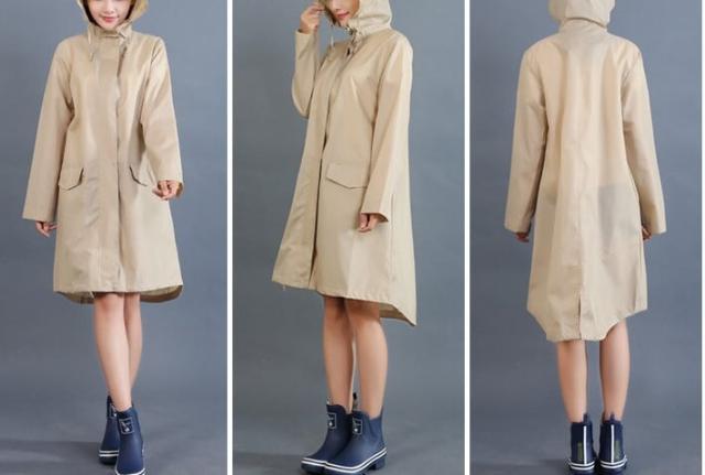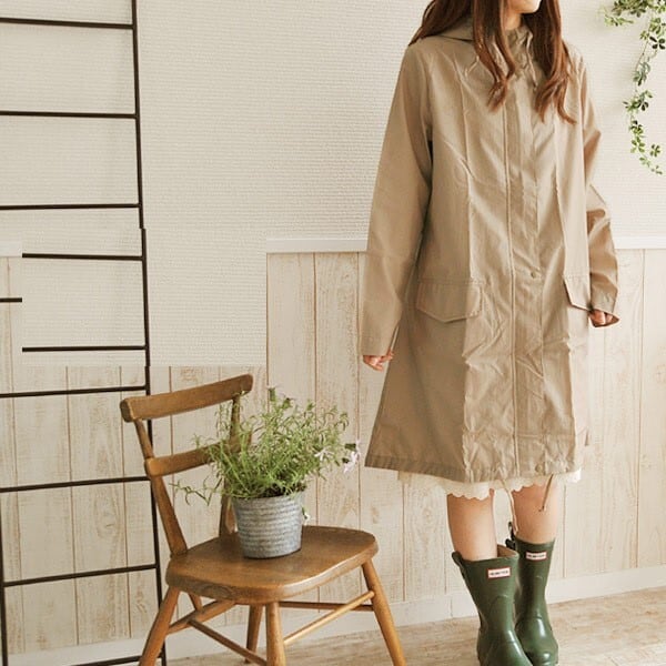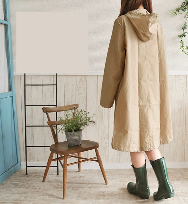 シンプルなデザインのレインコート。