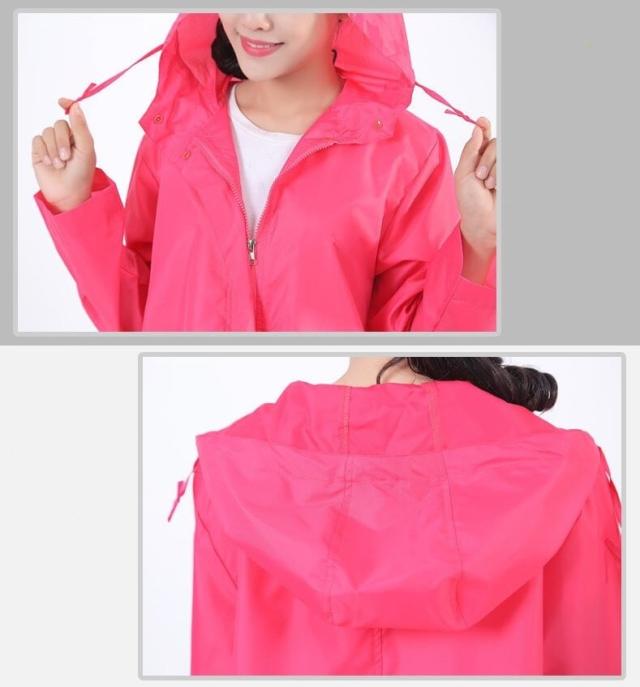 フードと裾には紐がついているので風の強い日に絞る事でめくれ上がりを防いでくれます。