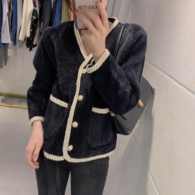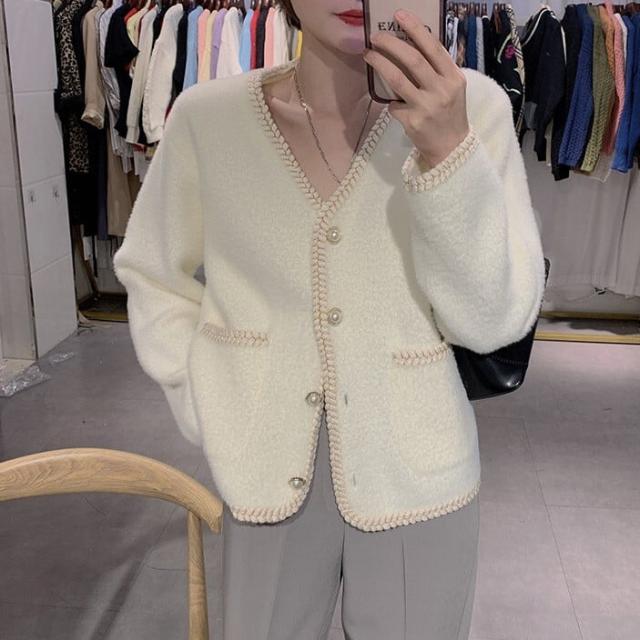 レディース ジャケット カーディガン 羽織り ふわふわ Vネック ノーカラー 襟なし モヘア フェイクファー 韓国 新作 体型カバー インスタ映え 高見え 美スタイル 可愛い かわいい