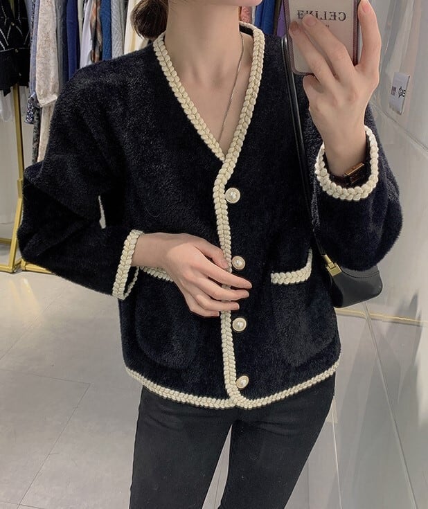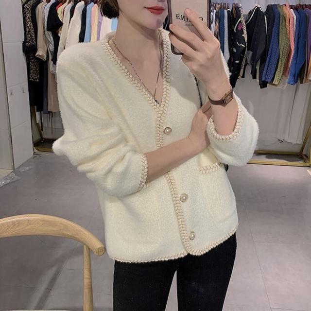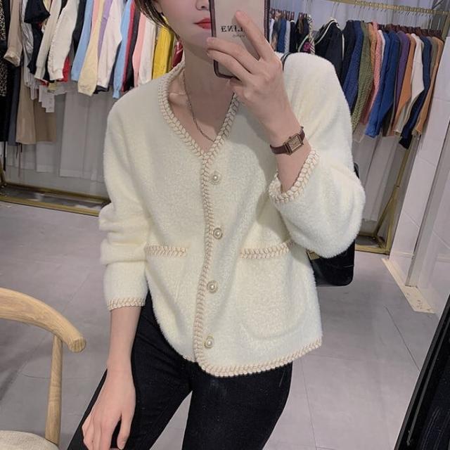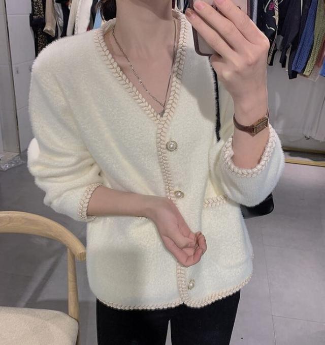 柔らかい肌触りのフェイクモヘアカーディガンです。