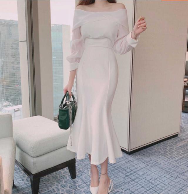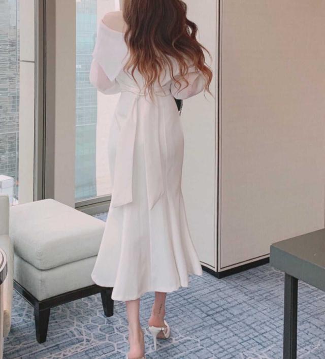 オフショルダーなデザインと背中の大きめなリボンが可愛い一枚。
