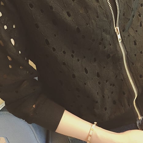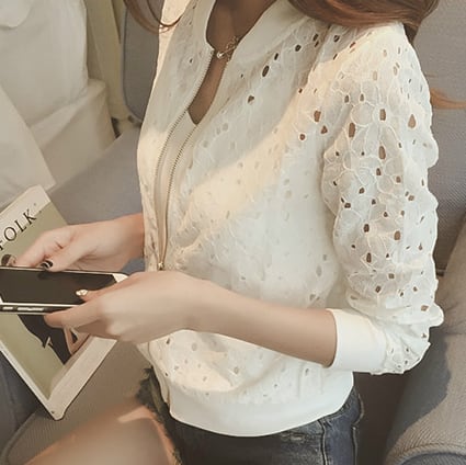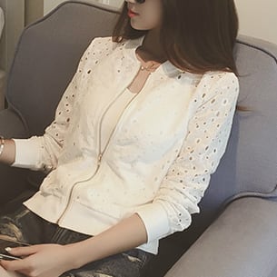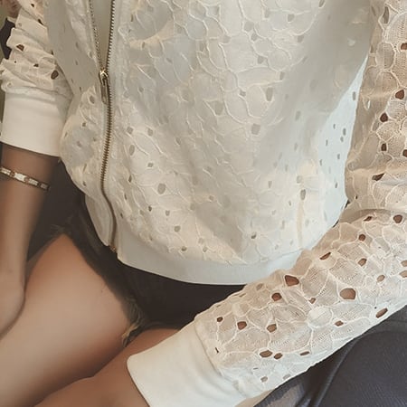 花柄のレースがかわいいショート丈のジップアップブルゾン。