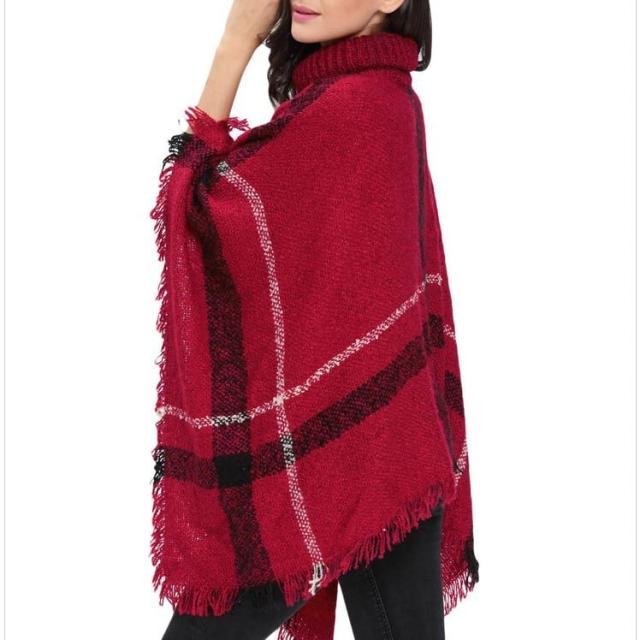 暖かみのあるニットポンチョ。