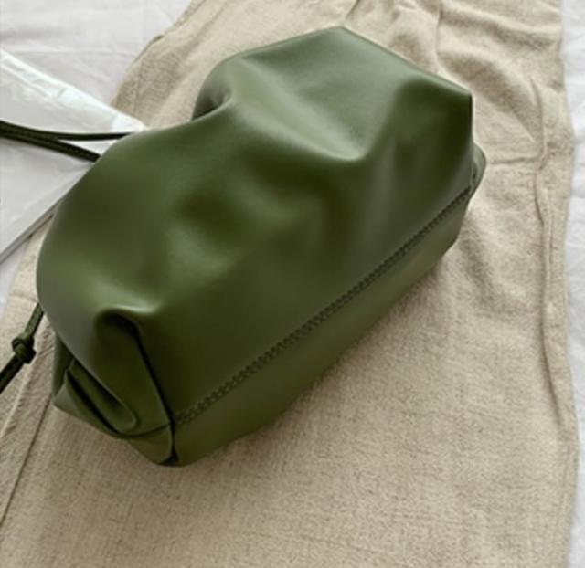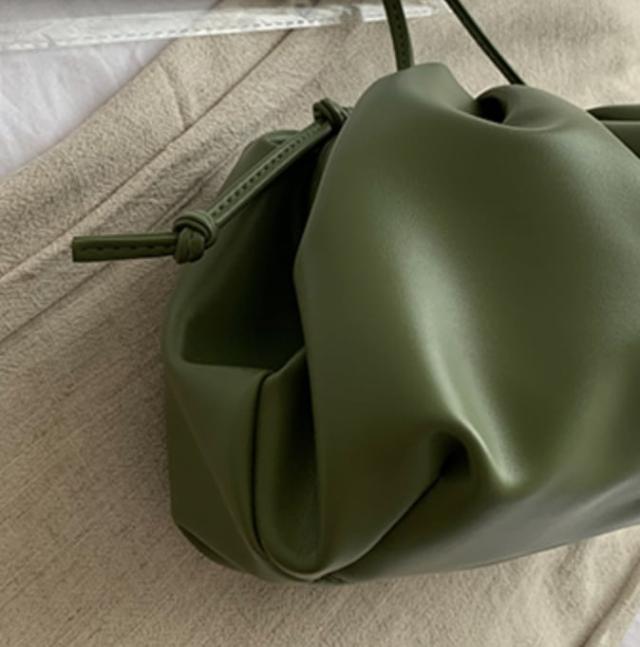 秋カラーがお洒落でフェミニンなコーディネートのワンポイントとしておすすめなバッグ。