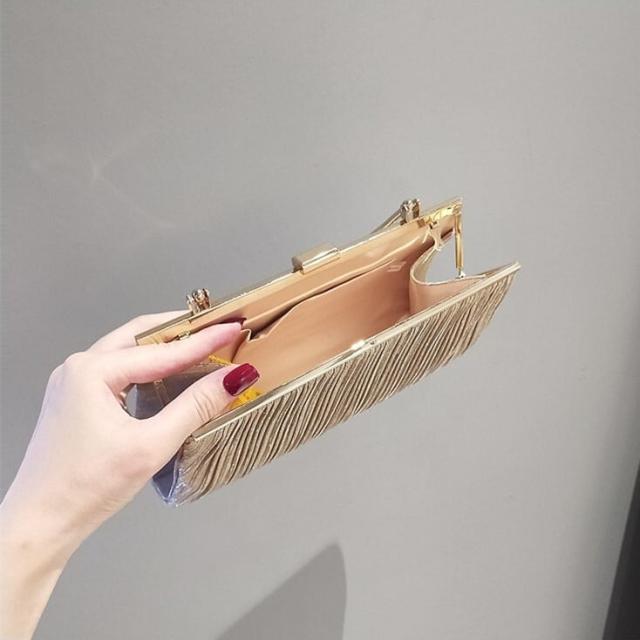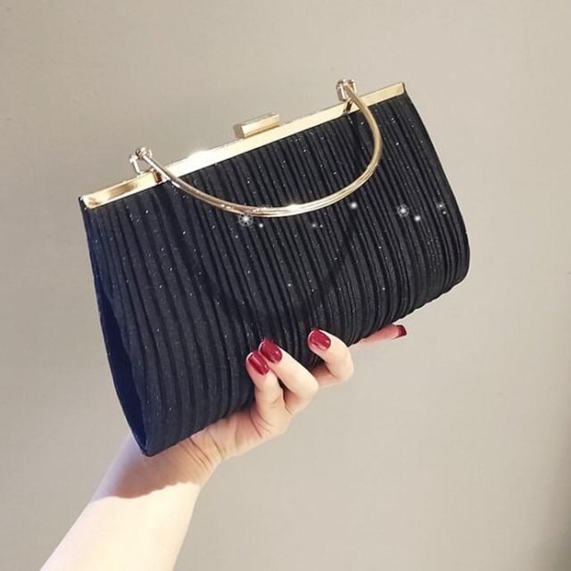 上品なプリーツと光沢のあるデザインがエレガントで華やかな場面にぴったりです。
