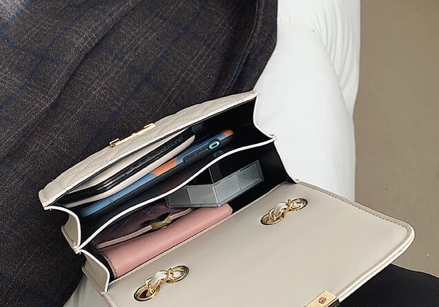 普段使いからパーティーシーンまでお使いいただけるエレガントなキルティングショルダーバッグ。