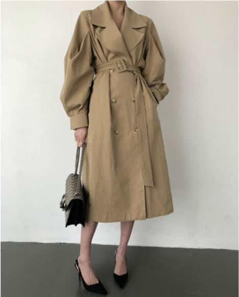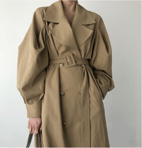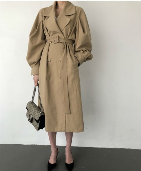 かっこいい大人の女性を演出する、英国スタイルのゆったりとしたトレンチコートです。