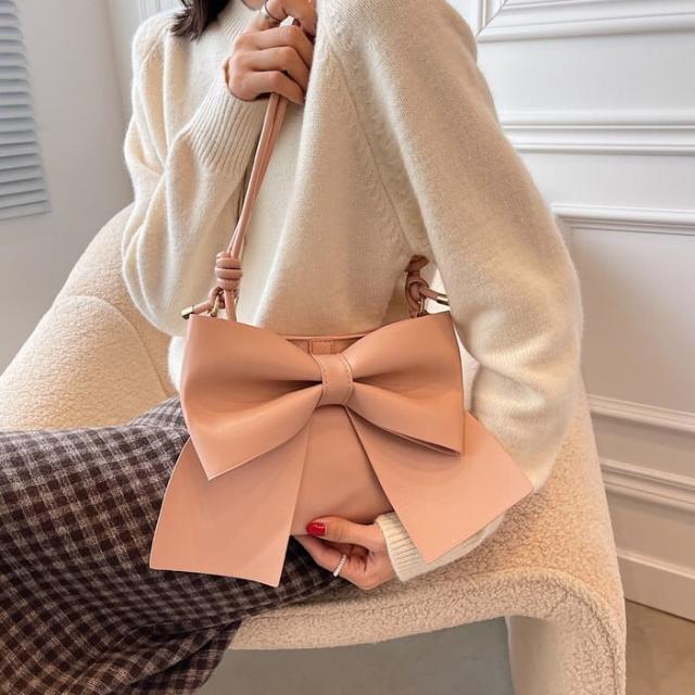 キュートなビッグリボンディテールが目を惹くショルダーバッグ。