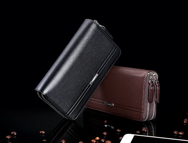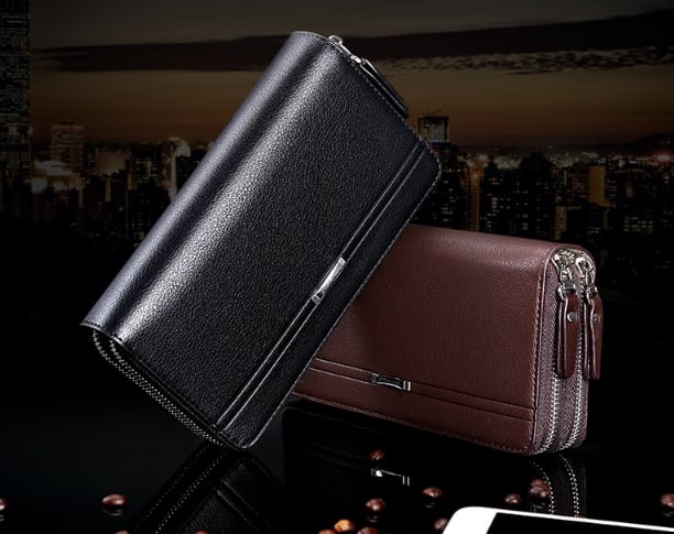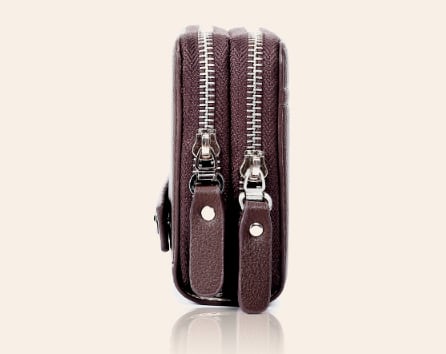 2つのl字ファスナーがついた大きめの大容量の財布です。