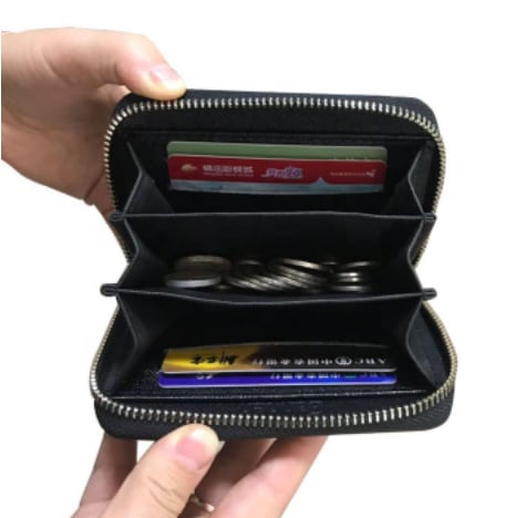 ジップを開くと中央に小銭入れ両サイドにカードを収納できます。