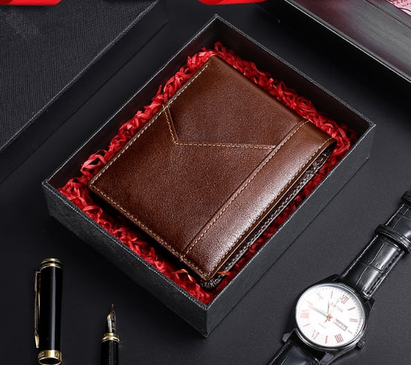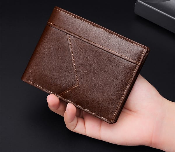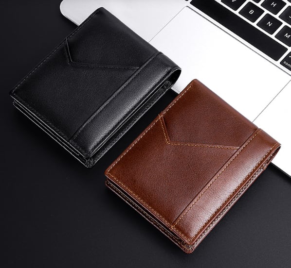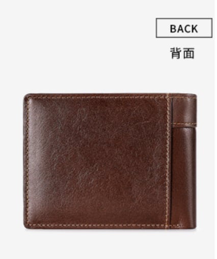 オーソドックスな形の本牛革の二つ折り財布です。