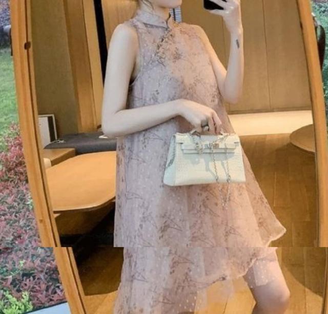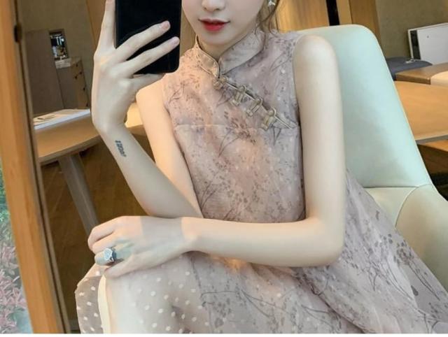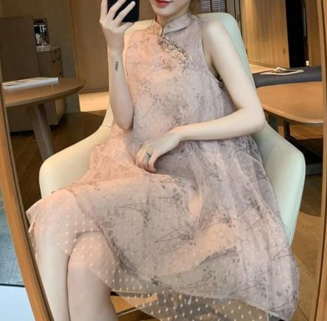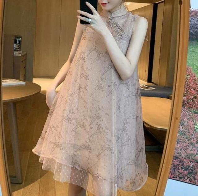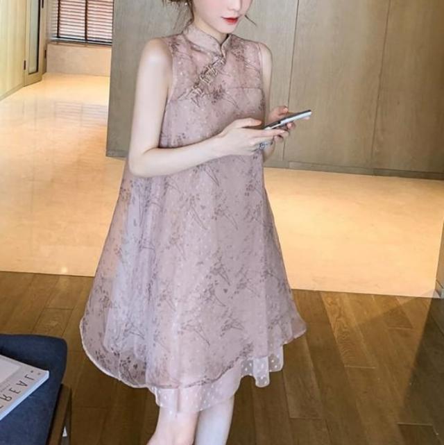 ふんわり可愛いチャイナ風ミニノースリーブドレス。