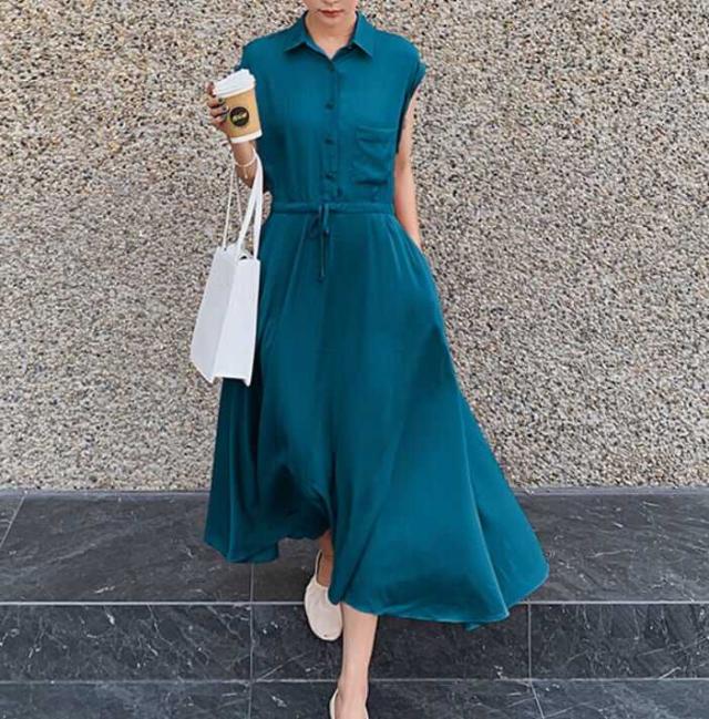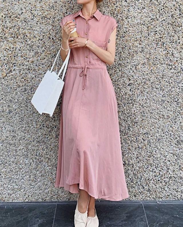 エレガントなシルエットのロングシャツワンピース。