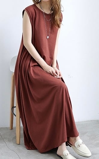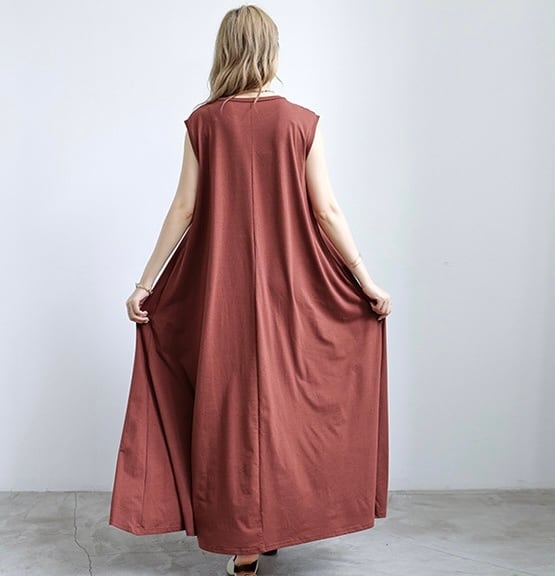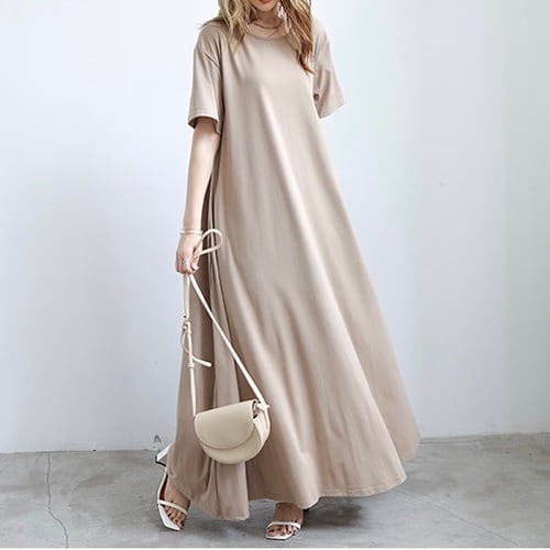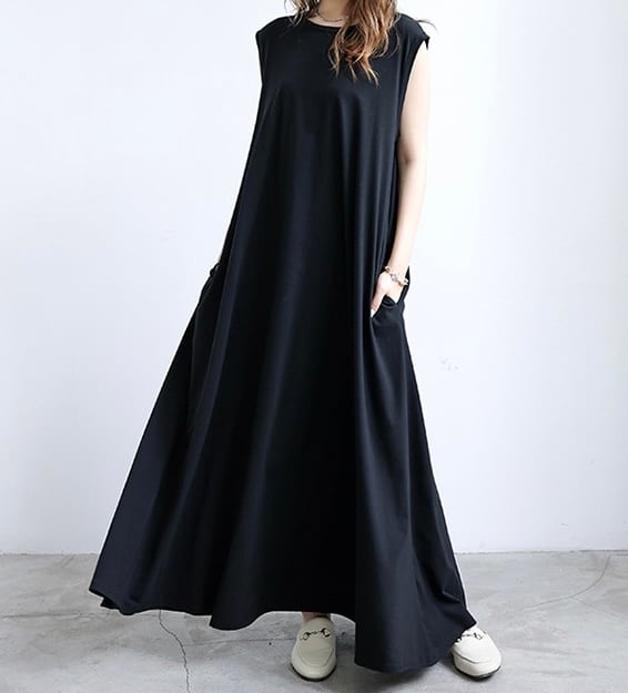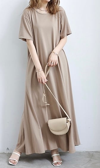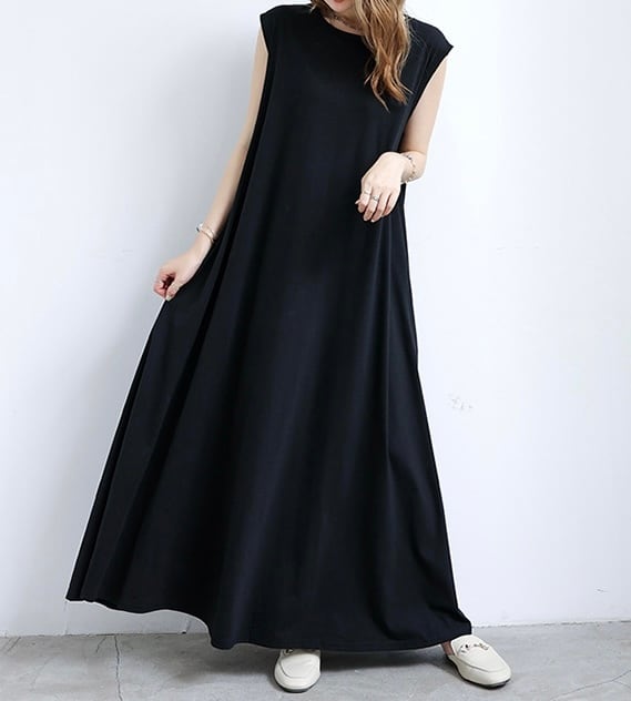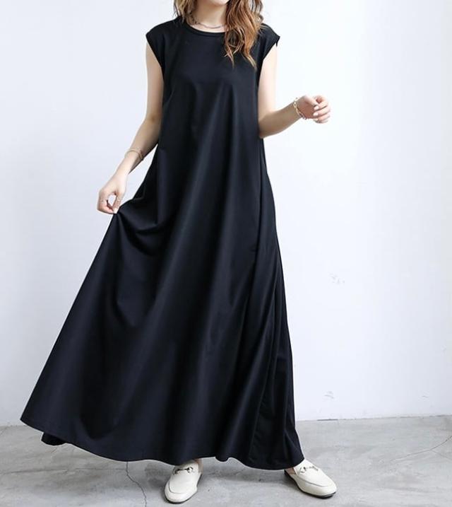 ワンピース ワントーン 半袖 フレンチスリーブ 袖あり 袖なし 二の腕カバー オーバーサイズ ビッグシルエット ゆったり お腹周りカバー 体型カバー 大きいサイズ M L XLロング丈 マキシ
