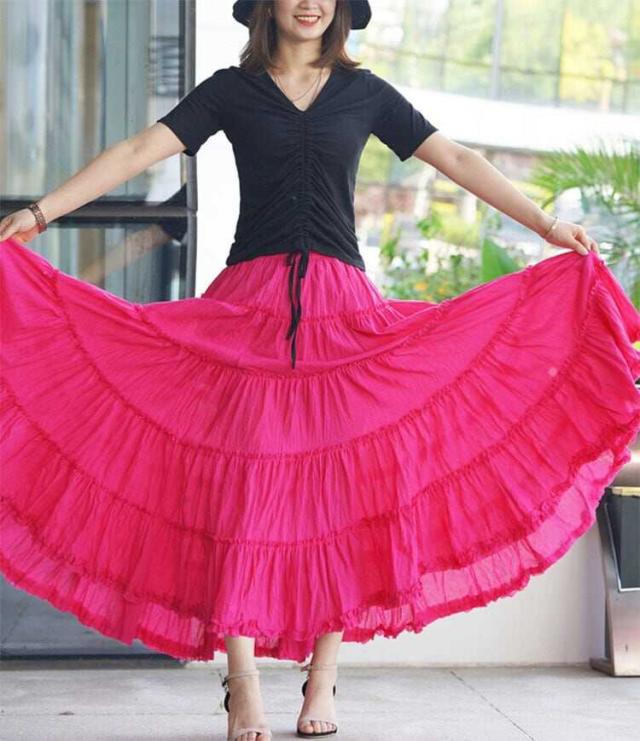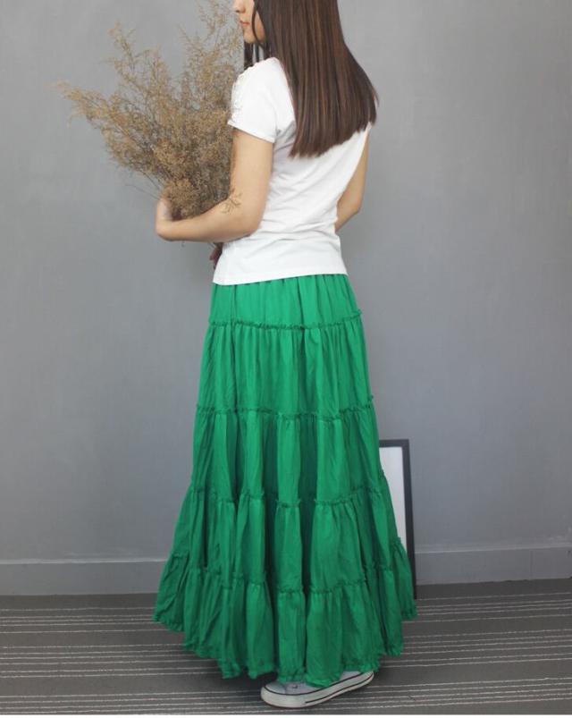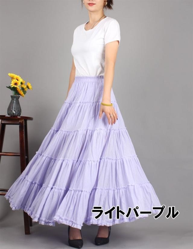 スカート ボトムス ミモレ丈 フレア 無地 プリーツ しわ加工 ティアード ニュアンスカラー フラワー フローラル バイカラー 透け感 シアー ボタニカル ウエストゴム ボリューム モード