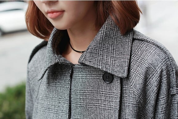 上品なグレンチェックのトレンチコートです。