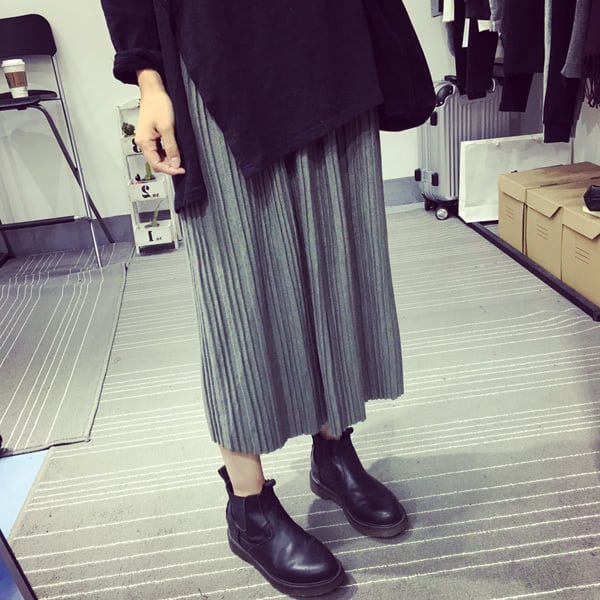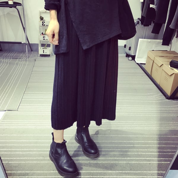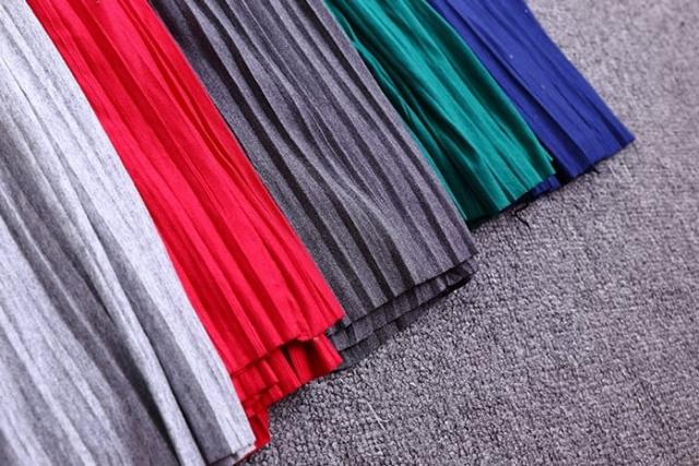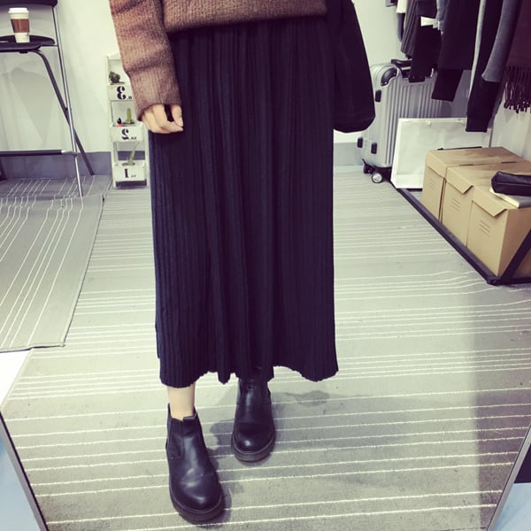 スカート ボトムス ミモレ丈 フレア プリーツ 無地 ニット ティアード ニュアンスカラー バイカラー ウエストゴム ボリューム モード ハイウエスト ワイド ゆったり ストレッチ 韓国