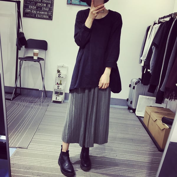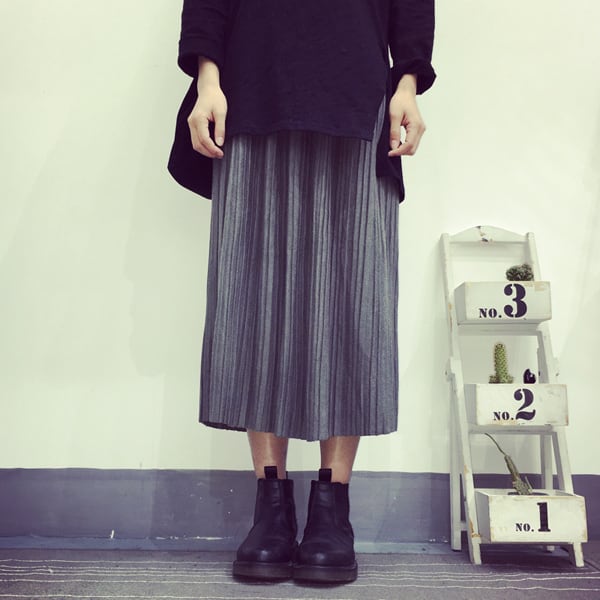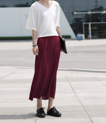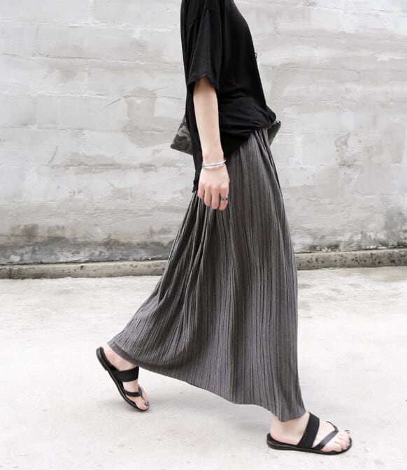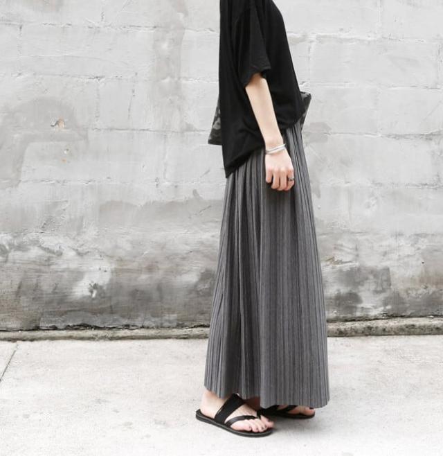 繊細なプリーツが可愛いミモレ丈フレアスカートです。